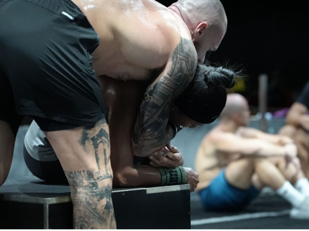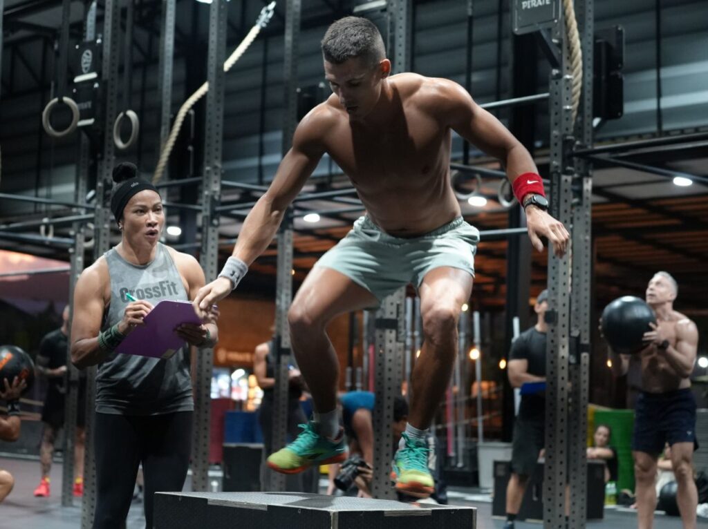 The workout itself was a real test of lower-body endurance and mental fortitude. Athletes suffered through high-volume wall balls, box jump overs, and tiresome wall ball carry over box, a combination that quickly turned into a relentless leg burner and lung crusher. The programming was simple but punishing to execute and without a strategy, pacing, and sheer determination the athletes would become quickly exhausted.